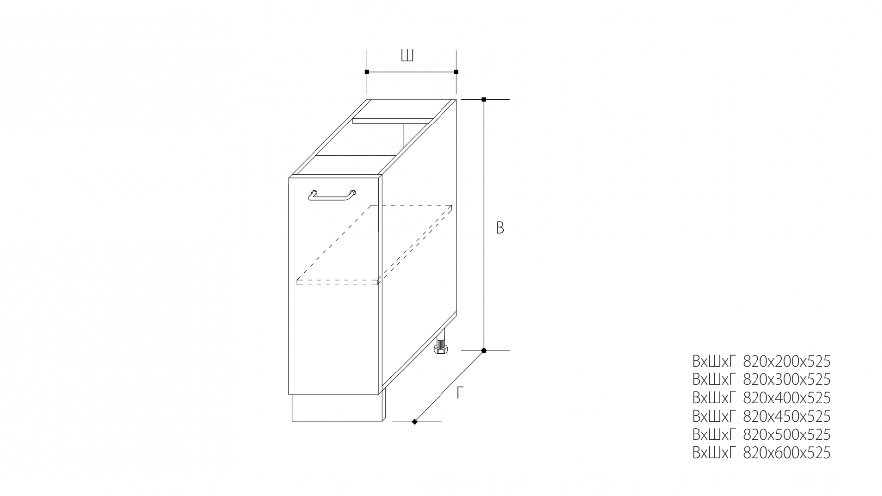 ВхШхГ: 820х400х525 мм.